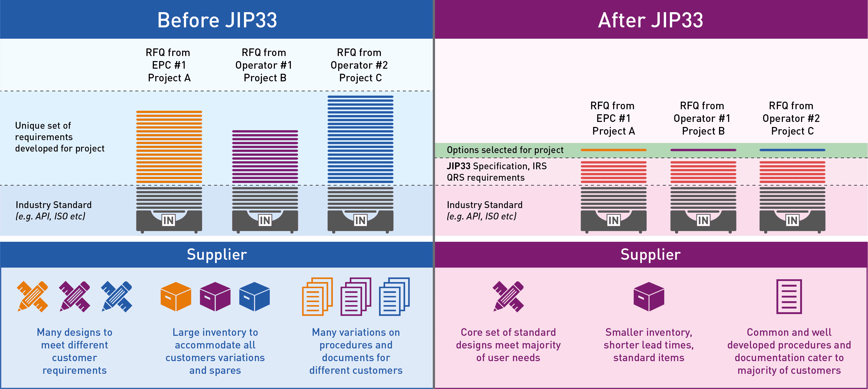 JIP33 is a joint industry program in which major oil & gas companies are aligning their  specifications for the procurement of equipment and/or packages. Thus far the program has published about 50 of those specifications, which are available through the IOGP website.